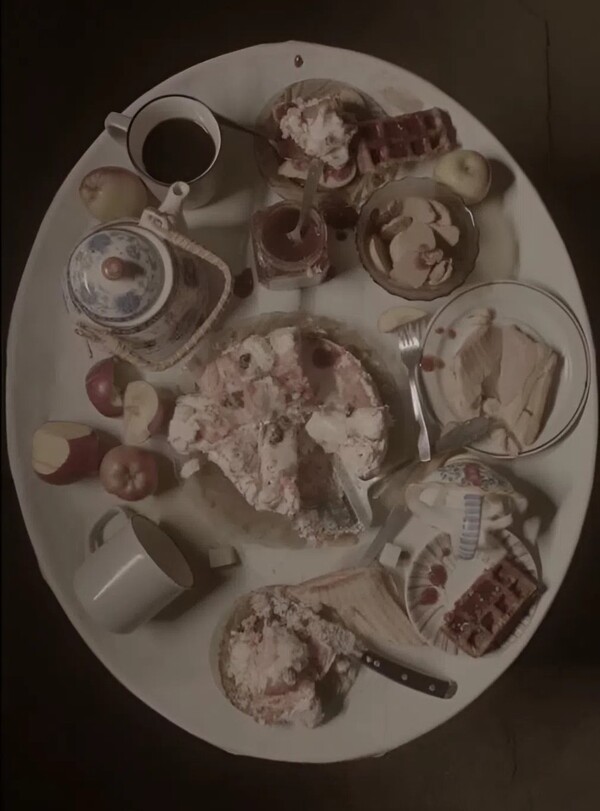 Я снимала это как метафору внутреннего хаоса, который лишает аппетита, делает ритуал бессмысленным. Но сейчас я читаю эту сцену иначе. Возможно, это не провал ритуала, а его высшая, трагическая форма. Они совершают все действия идеально, но не могут получить от них насыщения.