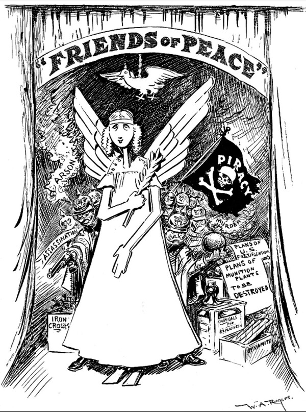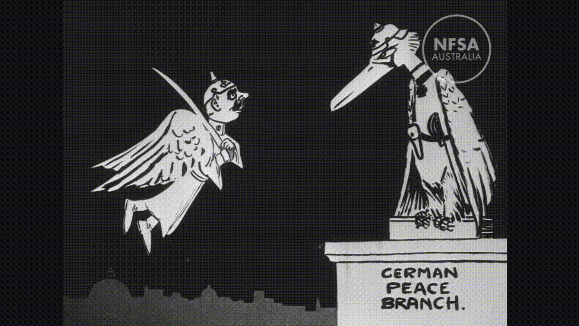 Одним из наиболее распространённых визуальных приёмов того времени было изображение врага в образе животных или чудовищ, служившее средством его обезличивания и дегуманизации. Эта техника широко использовалась в военной плакатной графике и затем органично перешла в анимацию. В мультфильмах периода Первой мировой войны можно увидеть те же стратегии: противник представляется либо в виде гротескного животного, либо в форме демонизированного монстра, что усиливало пропагандистский эффект и делало образ врага эмоционально более однозначным и легко считываемым для зрителя.