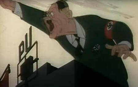 В первые годы войны анимация по-прежнему напоминала скорее «оживший плакат»: изобилие текста и акцент на карикатурных персонажах. Однако именно в этот период начинают появляться гротескные сюжетные ходы, которые становились возможными и выразительными прежде всего благодаря анимации.