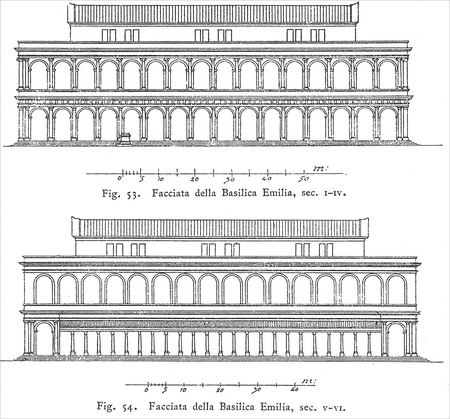 - базилики (Базилика Порция, 184 г. до н. э.; Базилика Эмилия, 179 г. до н. э.) - портики вокруг форумов - храмы на высоких подиях с фронтальной ориентацией (храм Портуна, ок. 100 г. до н. э.) - Колонны ещё несут нагрузку, но уже служат оформлению общественного пространства и демонстрации богатства семьи-строителя.