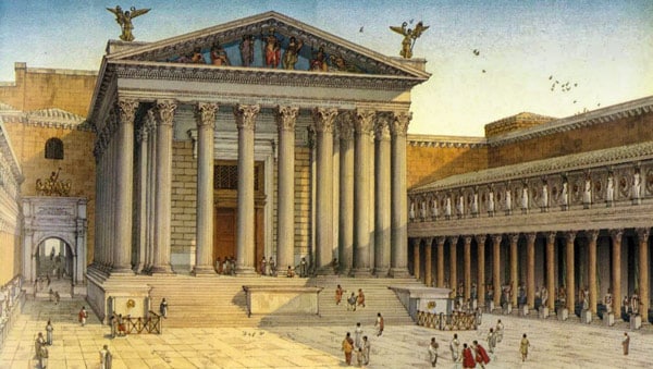 Древние Римляне, в свою очередь, наследуют этот язык форм, но переосмысливают его в масштабе государства. Те же колонны, те же ордерные пропорции теперь организуют не столько философию космоса и точнейшую математику, а движение толпы, распределяют свет в термах, выстраивают перспективу триумфальной арки. Эстетика сохранена, но её функция изменена: от созерцания — к воздействию, от гармонии бытия — к гармонии империи.