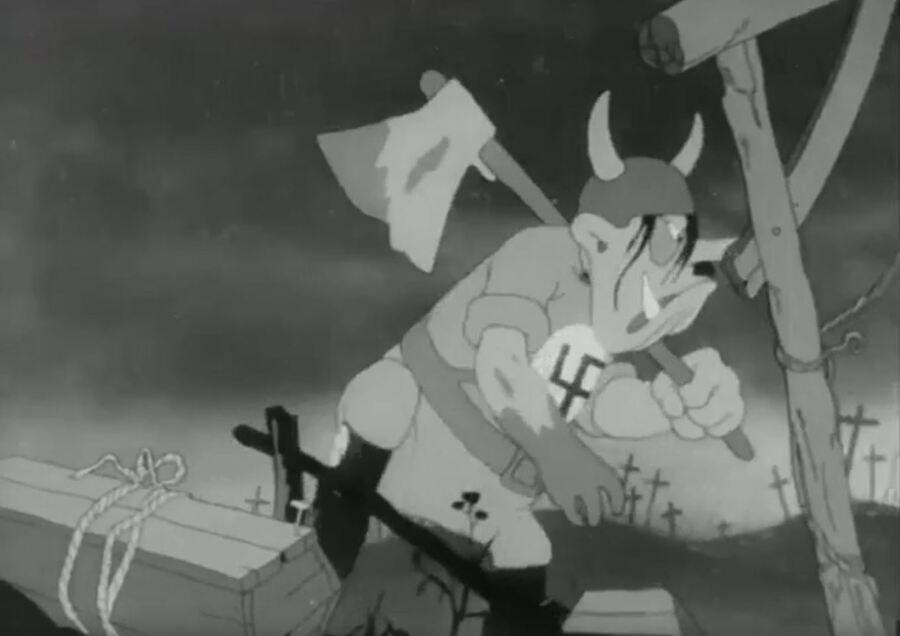 Для яркого запоминающегося образа в советских антивоенных мультфильмах времен ВОВ часто использовался прием символизма.