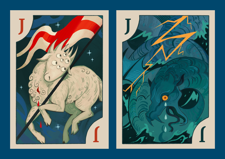 Колода карт, где задействованы образы и мотивы Апокалипсиса. Некоторые ряды карт собираются в единую композицию.