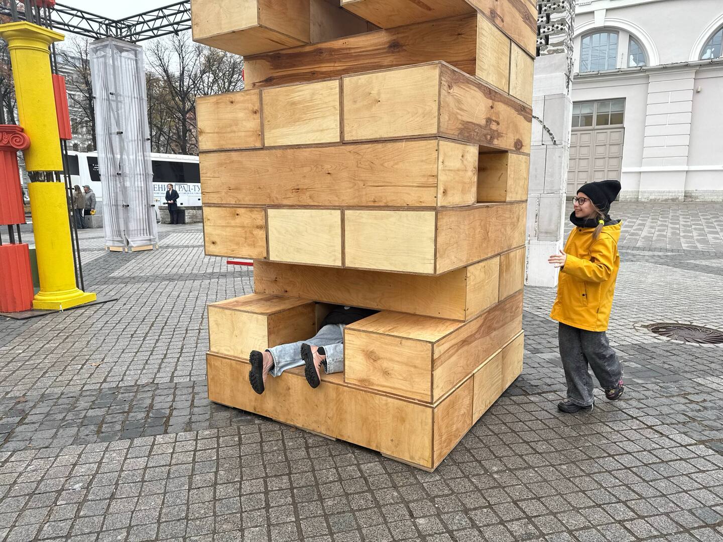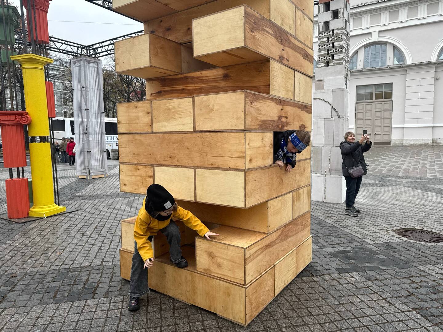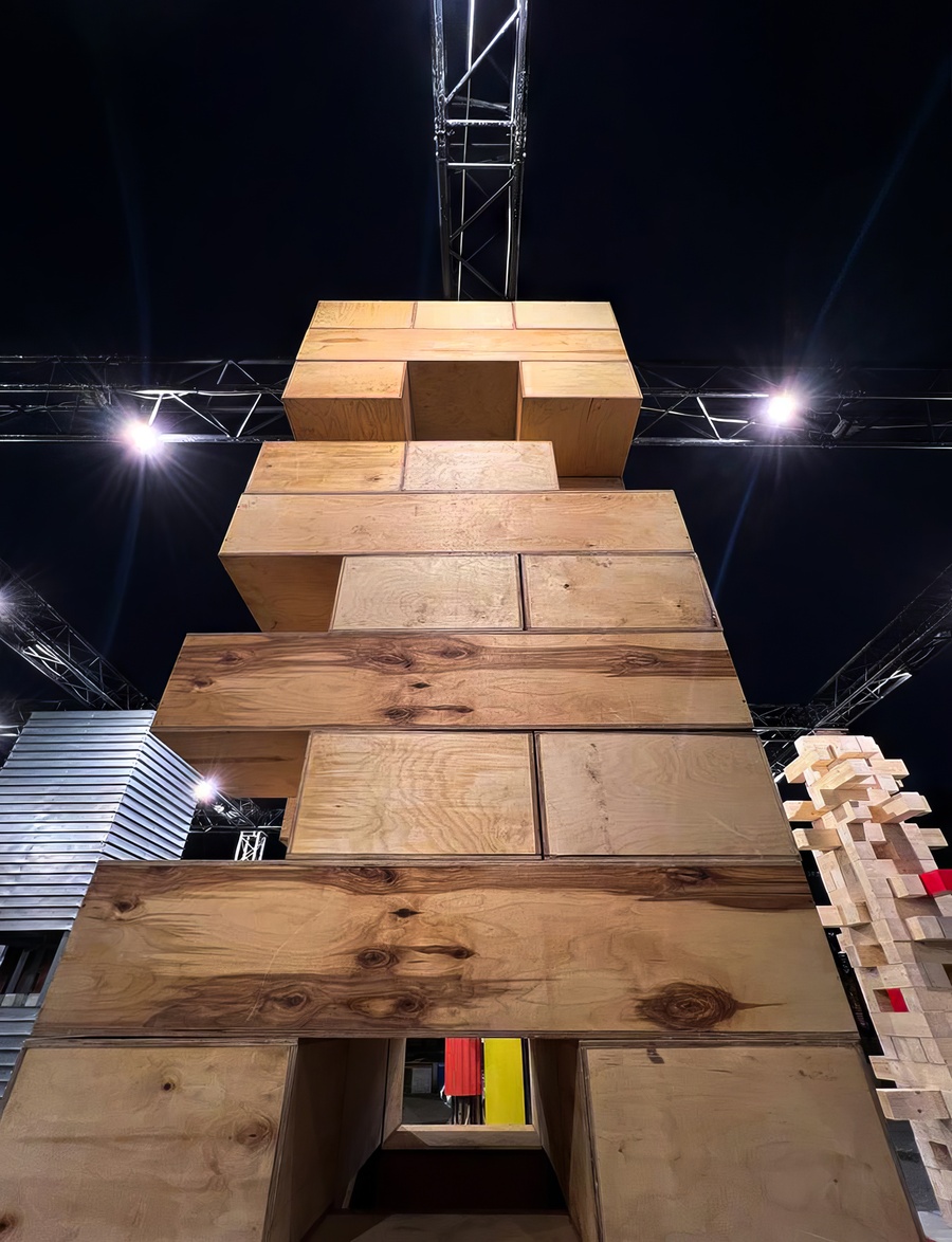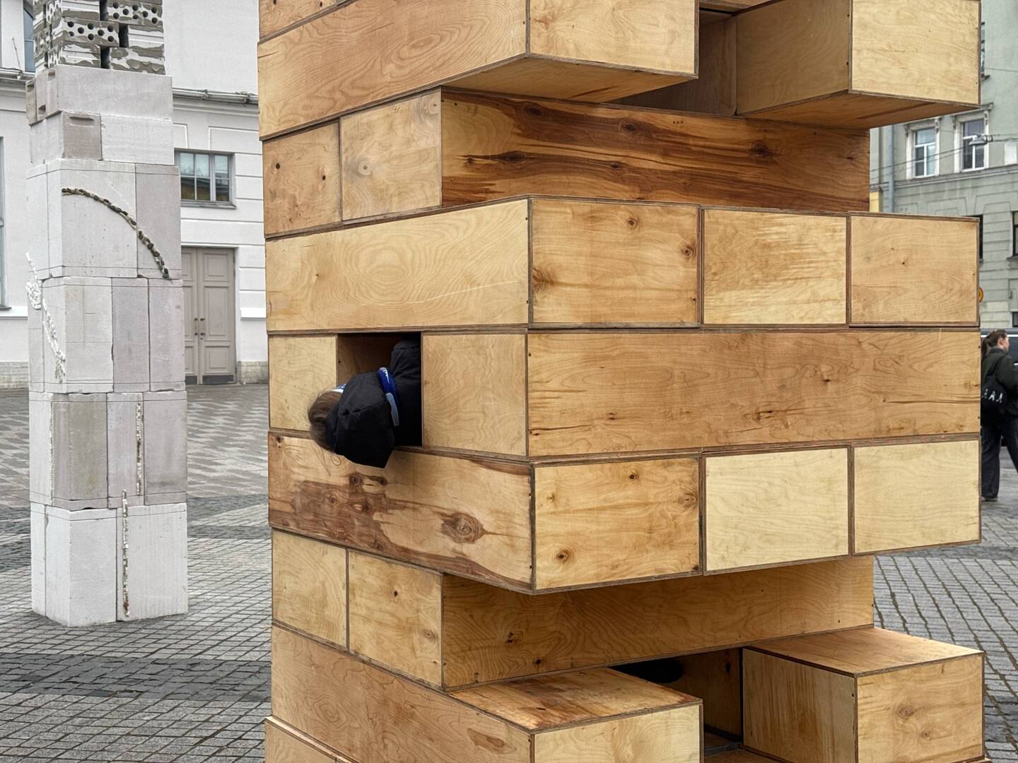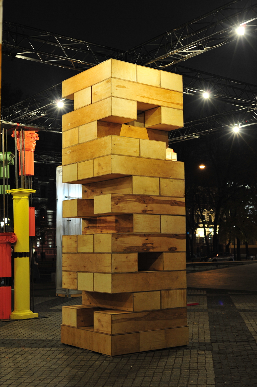Этот арт-объект, вдохновлённый классической архитектурой и игрой с пространственными элементами, — это гигантская конструкция, выполненная в стиле известной игры дженга, которая олицетворяет современную интерпретацию традиционных строительных методов и конструктивной инженерии. В её основе лежит не только архитектурная эстетика, но и идея о хрупкости и возможностях изменений в городской среде.