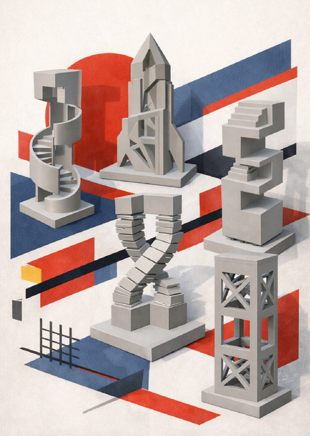 Серия тактильных архитектурных объектов, воплощающая чистоту формы, материальность и принципы конструктивной логики, вдохновленных работами советских конструктивистов и современными небоскребами. Это не макеты зданий, а скульптурные высказывания на языке объемов, линий и масс, вдохновленные конструктивизмом, брутализмом и минимализмом.