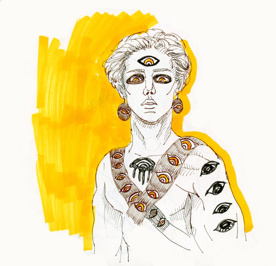 В этом модуле мы путешествовали по рынкам Марракеша, загорали на пляжах Ибицы, занимались шоппингом в ТЦ и посещали зоопарк. Ещё потренировалась в создании западного, инди и веб комиксов. Работала над персонажами к мифу об Ио и пригодилось многое из пройденного. Материалы: бумага, акварель, тушь, цветные и чёрно-белые линеры, цветные карандаши, трафарет, растушёвка, глянцевый акрил, маркеры.