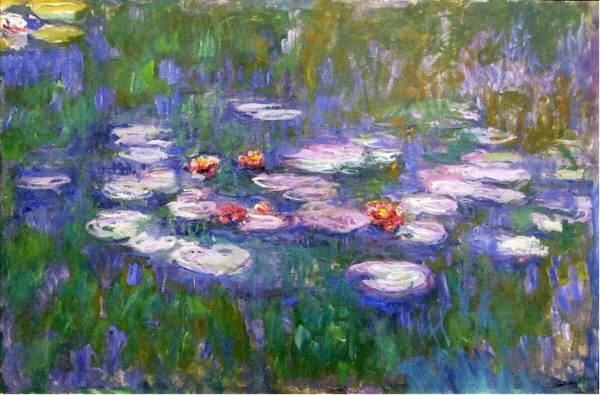 (1) Клод Моне. «Водяные лилии». 1916 г. (2) Анри де Тулуз-Лотрек. «Мулен Руж, Ла Гулю». 1891 г.