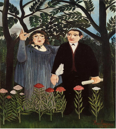 (1) Анри Руссо. «Муза, вдохновляющая поэта (Портрет Гийома Аполлинера и Мари Лорансен)». 1909 г. (2) Жорж Сёра. «Воскресный день на острове Гранд-Жатт». 1884–1886 гг. Картина, вызвавшая сенсацию