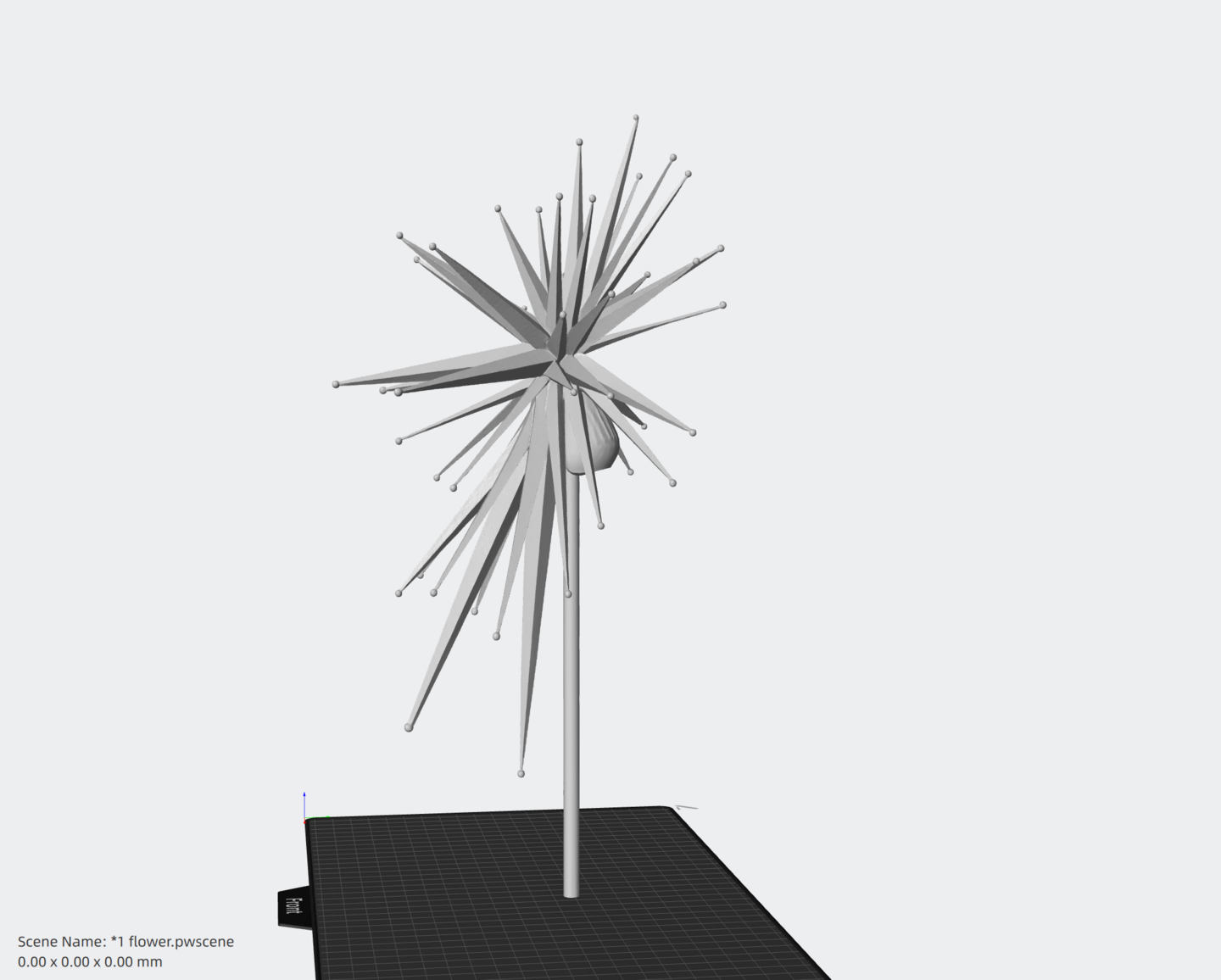 Итоговые 3D-модели первого цветка в разных ракурсах (Hyper 3D, Qwen Chat).