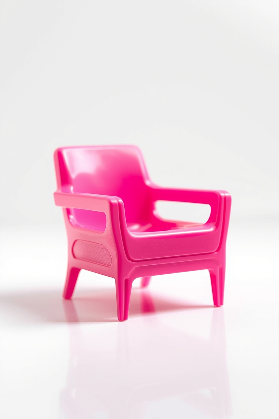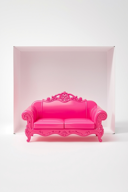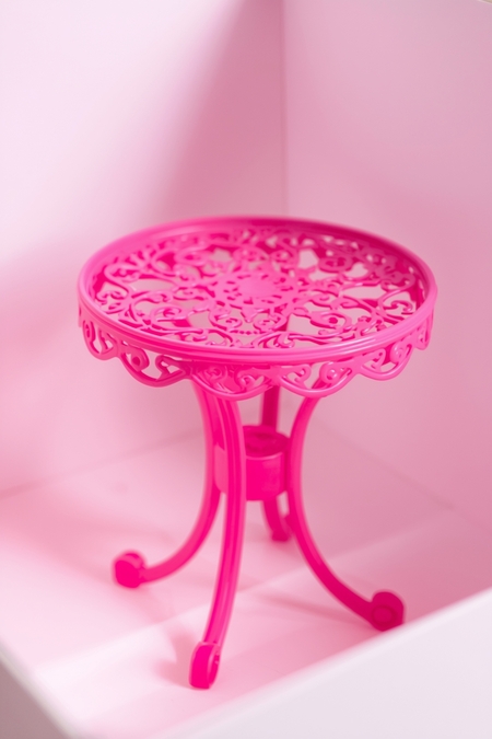 Стиль подбирался отдельно для каждого предета мебели, так как наборы Барби-мебели часто придерживаются эклектики и свободно смешивают классику с минимализмом. Главными опорными точками стали розовый цвет, смягчение углов и подбор пропорций предметов для удобства взаимодействия куклы с ними.