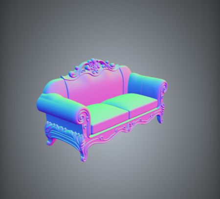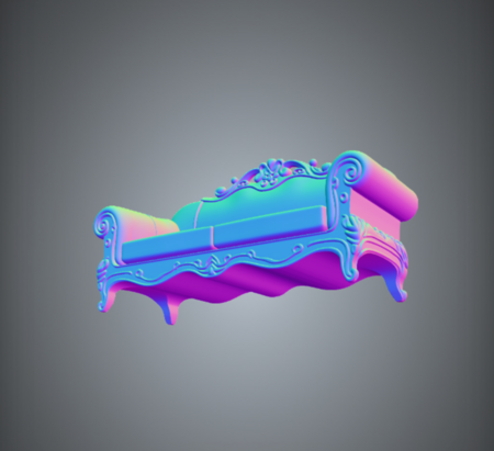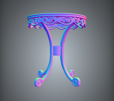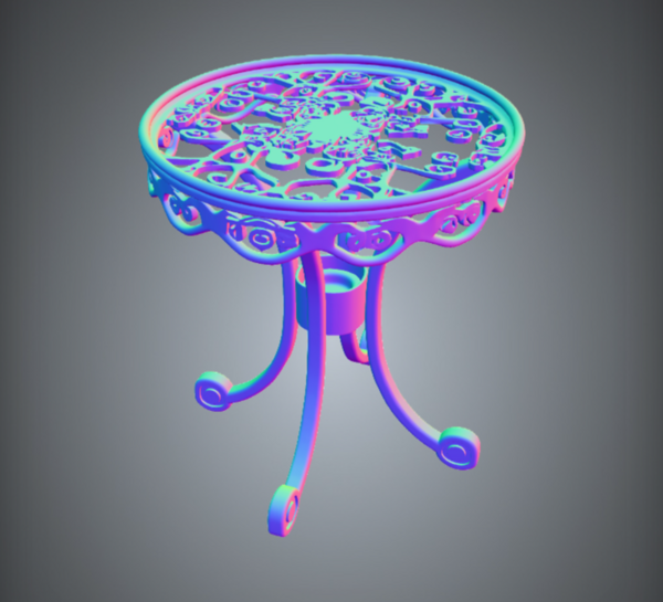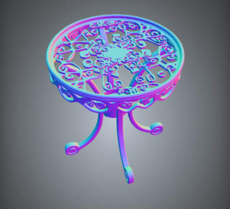 SLA — лазер затвердевает жидкую смолу. Отлично подходит для миниатюрной мебели с высокой детализацией, в данном случае для кресла, лапмы и резного столика.