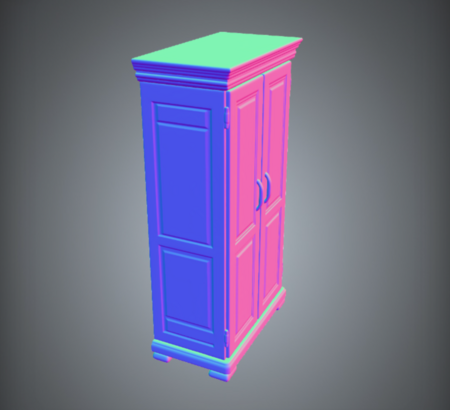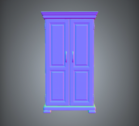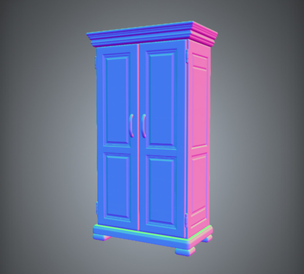 Шкаф здесь является еще одним примером второстепенной мебели, он выполнен в очень простой форме, так как в большей степени выполняет функциональную роль. Именно пэтому он разделен на две крупные створки, позволяющие удобро размещать кукольную одежду.