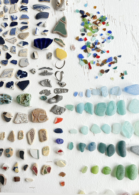 Обкатанные морем осколки стекла и посуды из бухты «Стеклянная» и весенний гербарий (региональные виды) собранный во Владивостоке