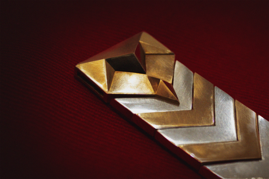 Ювелирное украшение, созданное на стыке дизайна и художественной цитаты. В основе — визуальный код сериала «Твин Пикс»: зигзаги пола Чёрного Вигвама, силуэт совы, дуальный ритм.