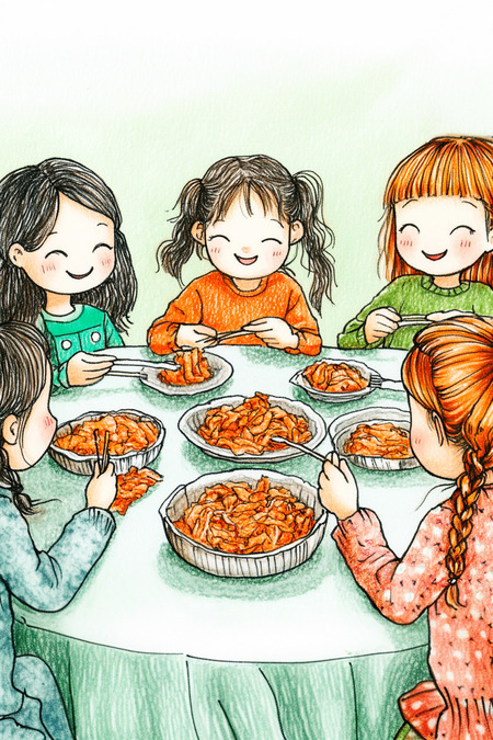 1. Create a poster for the 'Kimchine' brand, highlighting the idea of cultural unity through food. The poster should feature various cultural symbols (e.g., Asian calligraphy, Western elements, ethnic patterns) intertwining with an image of a bowl of kimchi. Text: 'Kimchine — bridging cultures through taste.' 'Discover the flavor that unites the world.' The design should use a warm color palette: red (#E63946), orange (#FFB347), green (#019875), and beige (#F4E1C6). The typography should be modern, clean, and easy to read, with elements reflecting cultural fusion.