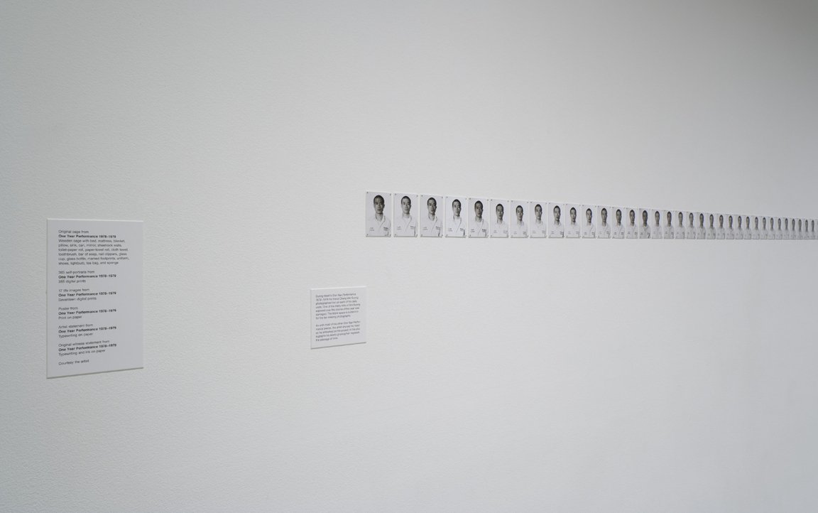 Эта выставка посвящена самому раннему перформансу художника, обычно называемому его Cage Piece (1978–79), с 365 фотографиями, тщательно документирующими ежедневное течение времени.