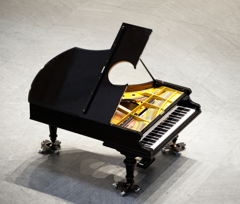 Для девятой части серии Performance Exhibition Series художники Дженнифер Аллора (р. 1974) и Гильермо Кальсадилья (р. 1971) представляют Stop, Repair, Prepare: Variations on Ode to Joy for a Prepared Piano (2008). Для этой работы художники вырезали отверстие в центре рояля, через которое пианист играет знаменитую Четвертую часть Девятой симфонии Бетховена, обычно называемую «Одой к радости». Исполнитель наклоняется над клавиатурой и играет вверх ногами и назад, одновременно перемещаясь с фортепиано по огромному атриуму. Результатом является структурно неполная версия оды — отверстие в фортепиано делает две октавы нерабочими — что фундаментально преобразует как динамику исполнителя/инструмента, так и фирменную мелодию, подчеркивая противоречия и двусмысленности песни, которая долгое время использовалась как символ гуманистических ценностей и национальной гордости.