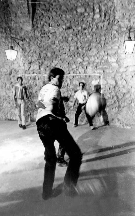Алигьеро Боэтти работает над «Шаманом-шоуменом» в Arte Povera, 1968 год. Фото Бруно Манкони / Ричард Лонг, Паоло Икаро и Франческо Гоццано играют в футбол в «Арсенале». Фото Бруно Манкони.