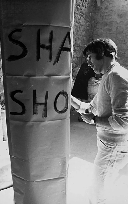 Сборка во время выставки Arte Povera + Azioni Povere, Амальфи, Италия, 1968 год. Слева направо: Томмазо Трини, Ахилле Бонито Олива, Джермано Челант, Филиберто Менна, Марчелло Румма (вверху справа). С