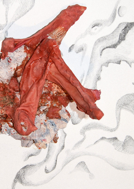 Мой проект про поиск нечеловеческого внутри себя. Я ищу пространство между человеческим и нечеловеческим, где границы стираются и невидимое становится осязаемым. В процессе этого поиска я нахожу рудименты животного, чтобы восстановить связь с диким внутри себя. Среда, которую создаю в проекте — условное пространство внутри меня, где можно встретить не-человеческое, чуждое и хтоническое.