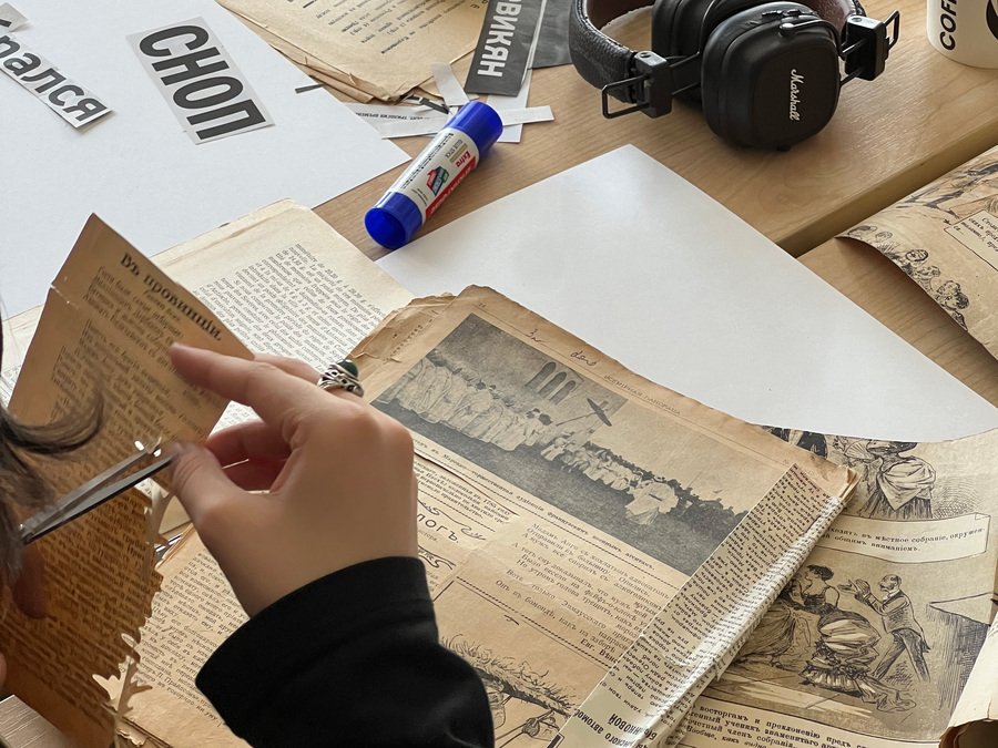 Студенты разбиваются на пары и портретируют друг-друга в технике коллажа в аналоговом и цифровом вариантах.