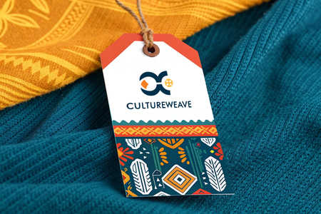 2. Recraft.ai. Prompt: Create a tag for the brand’s fashionable men’s skirts «cultureweave», inspired by the folk flavor of different countries, on the background of natural fabric, using bright natural colors such as mustard, sea green and brick