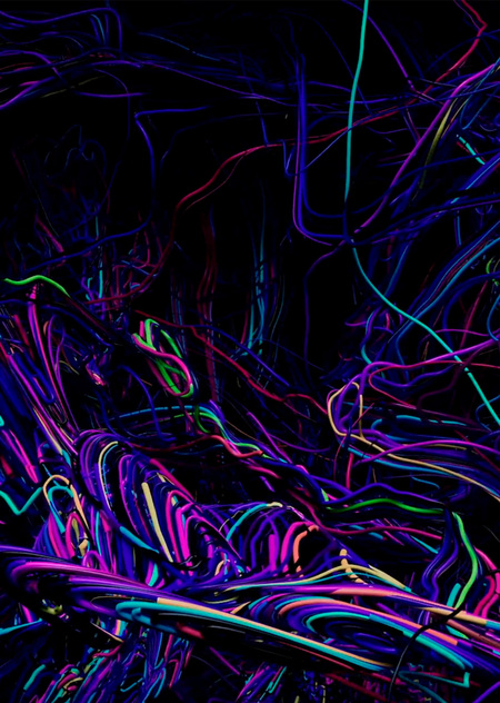 Хаотичное переплетение линий напоминает беспорядочный, но живой поток мыслей во сне. Мысли появляются спонтанно, иногда случайно, иногда стремительно. Некоторые из них теряются, другие усиливаются, трансформируются в идеи. Цвет и движение становятся способом визуально зафиксировать этот процесс — от первых импульсов до устойчивых форм.