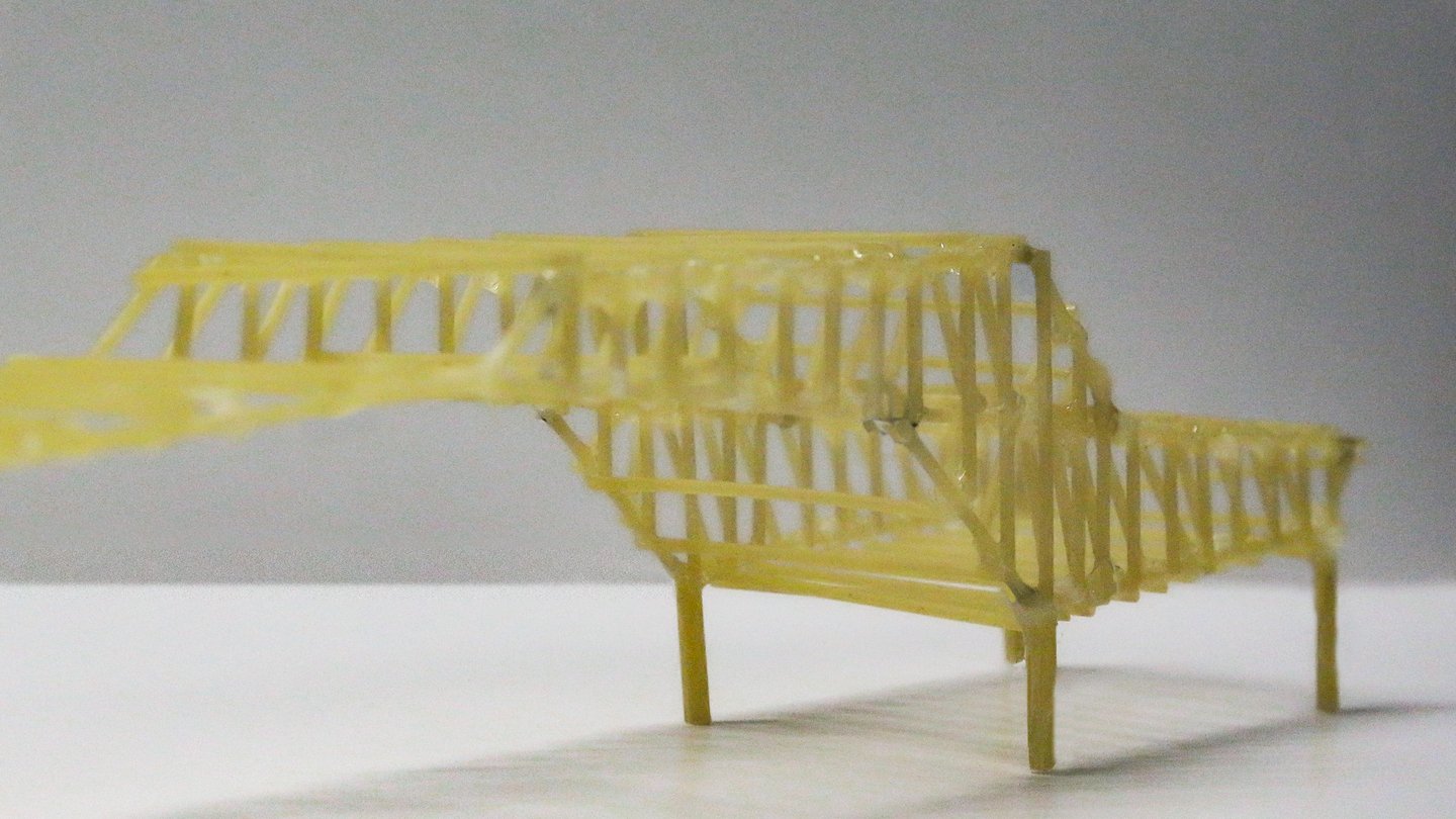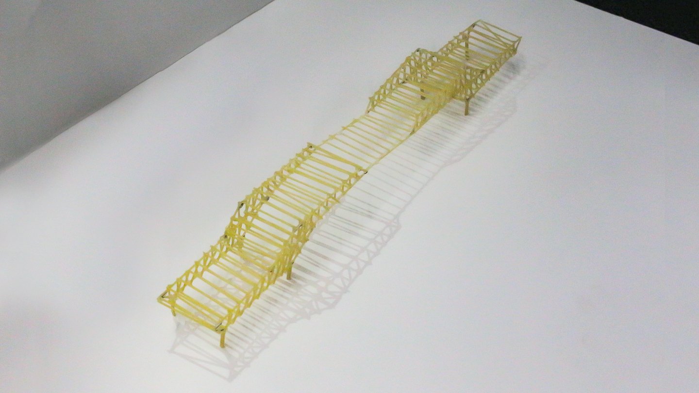 Сто сорок шесть обломков малого размера, сто шестнадцать среднего и двадцать два длинного — всего двести восемьдесят четыре обломка макарон Барилла номер три. Соединять последовательно под разными углами двухкомпонентным ядовитым клеем: на каждое соединение — две капли и три пшика активатора. Ножки моста подрезать до ровного уровня. Дать конструкции постоять двадцать секунд, чтобы убедиться, что всё стоит. Если один обломок ломается — не менять, а оставить как есть. По завершении направить свет фонарика телефона под низ конструкции — для теней, для красоты, для ощущения присутствия света под мостом. Вечером мост можно сварить и съесть — в знак выполненной работы.