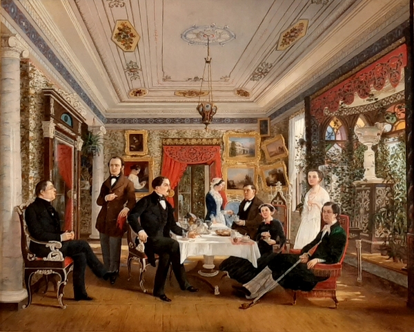 Не так далеко от вышеупомянутой героини, мы видим женщину дворянского происхождения. В ее лице художник уже не отображает того послушания и скромности, которые ранее мы видели у крестьянки, однако вокруг нее мы все также видим властных мужчин, в присутствии которых она вынуждена оставаться тенью своего супруга. Эту героиню также можно назвать глубоко верующей, судя по эмоциям на ее лице, что также объединяет ее с девушкой, которую мы рассматривали ранее. Так действительно ли образы барыни и крестьянки. Так далеки друг от друга? Давайте рассмотрим картины художников с изображением женщин из дворянского сословия и подумаем так ли сильно они отличаются от рассмотренного ранее образа крестьянки.