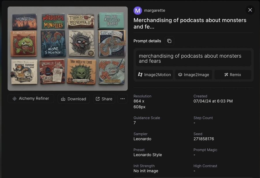 Мерчендайзинг, поддерживающий атмосферу серии подкастов, где говорят про психологию монстров и страхи. Он стал основной идеей для стартапа.