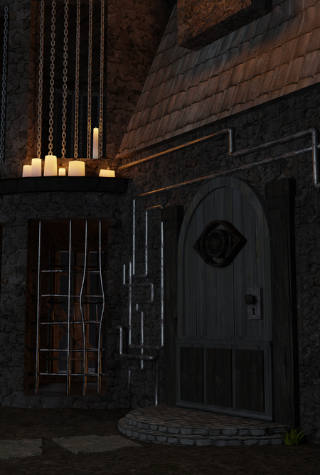 Концепция моего проекта — это атмосферная и мрачная сцена. В сцене фигурирует старый дом, навевающий ужас, внутри которого большое количество клеток и цепей.