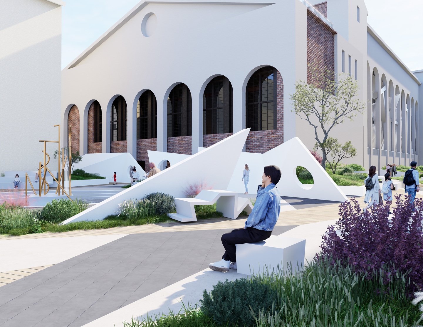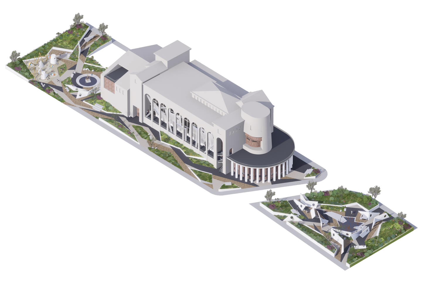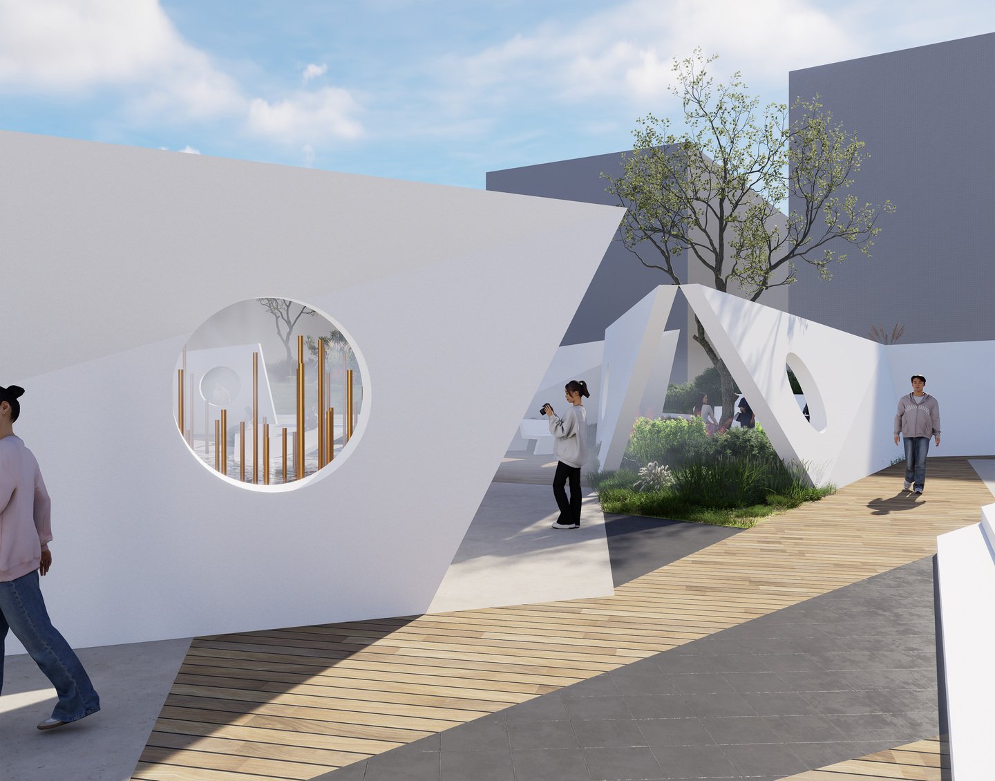 Проект продолжает тему выставки и фасада, превращая пространство в метафизический пейзаж, где человек проживает путь художника — от вопроса к ответу, от разрушения к гармонии.