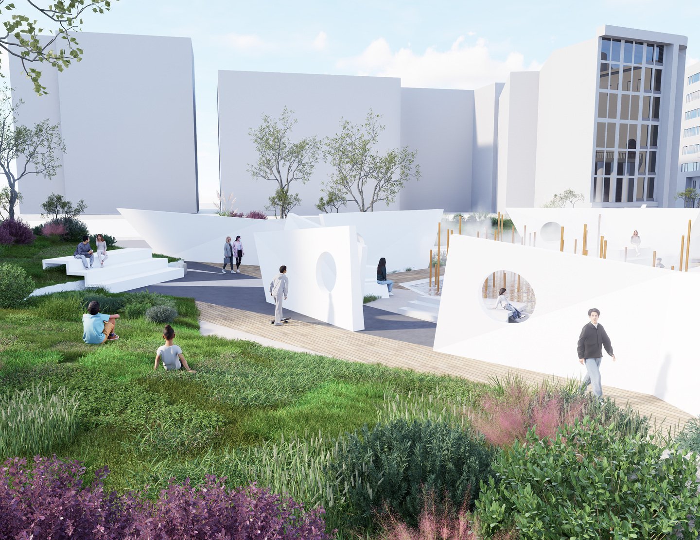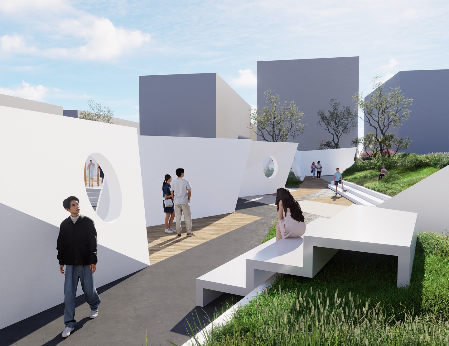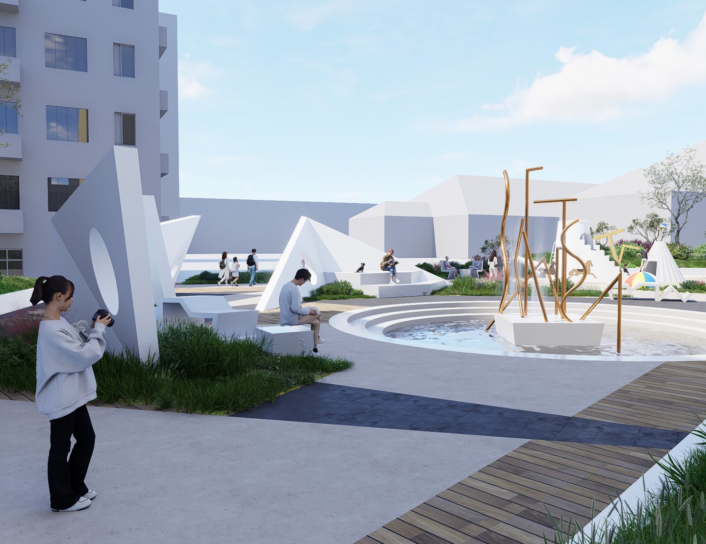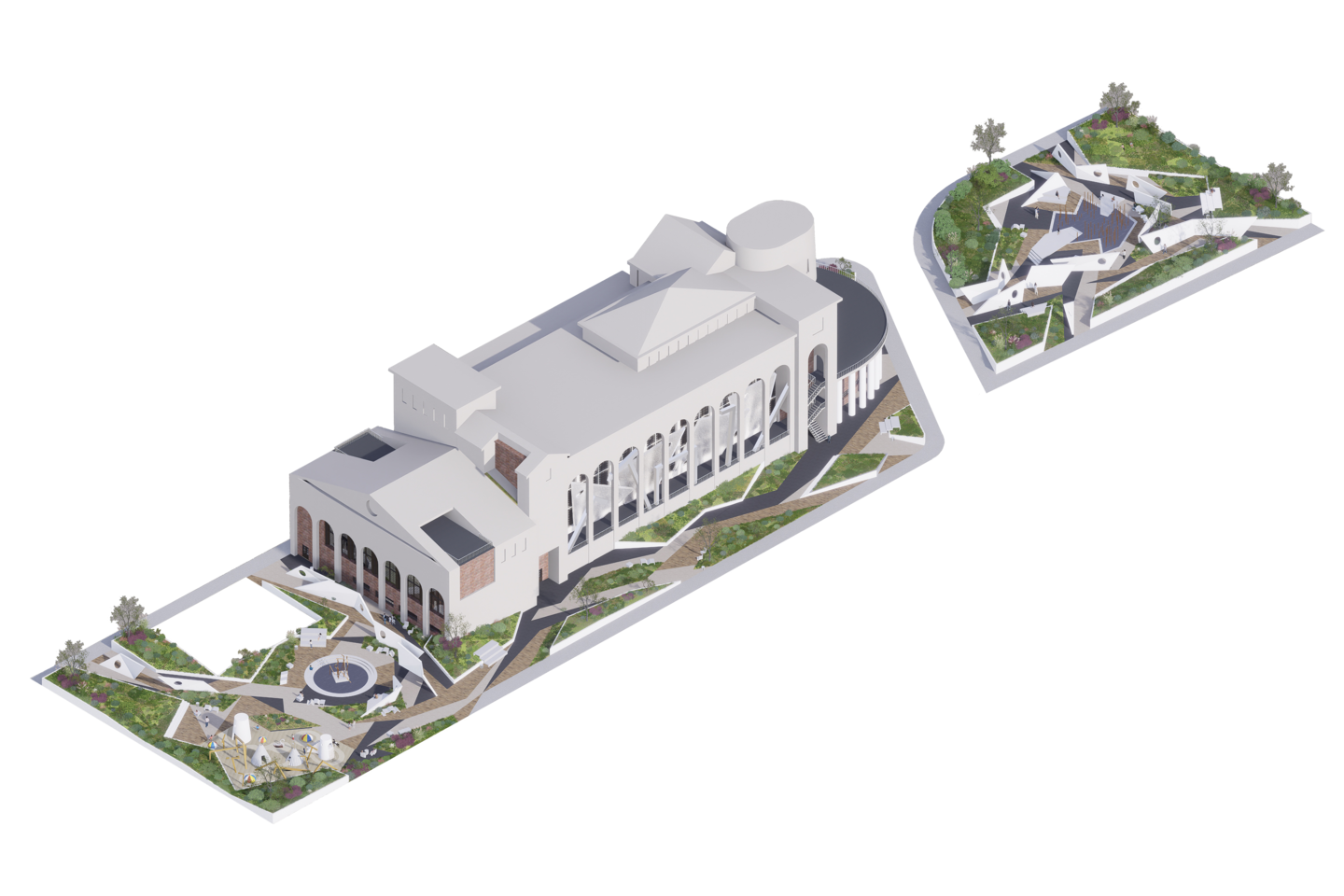 Проект продолжает тему выставки и фасада, превращая пространство в метафизический пейзаж, где человек проживает путь художника — от вопроса к ответу, от разрушения к гармонии.
