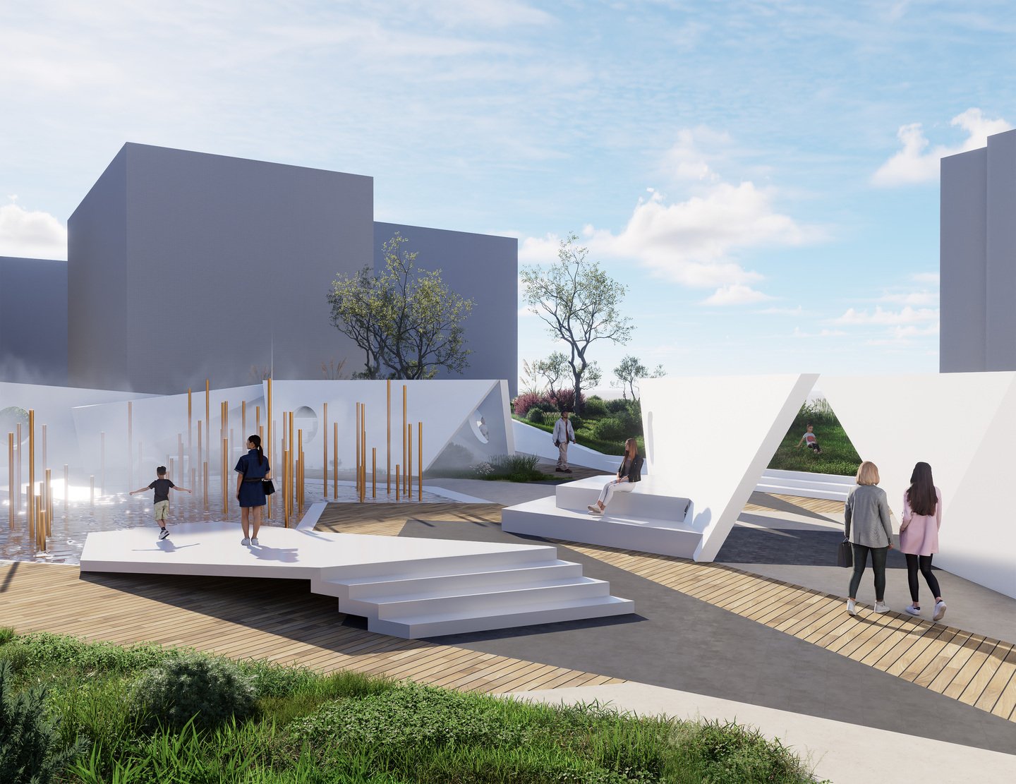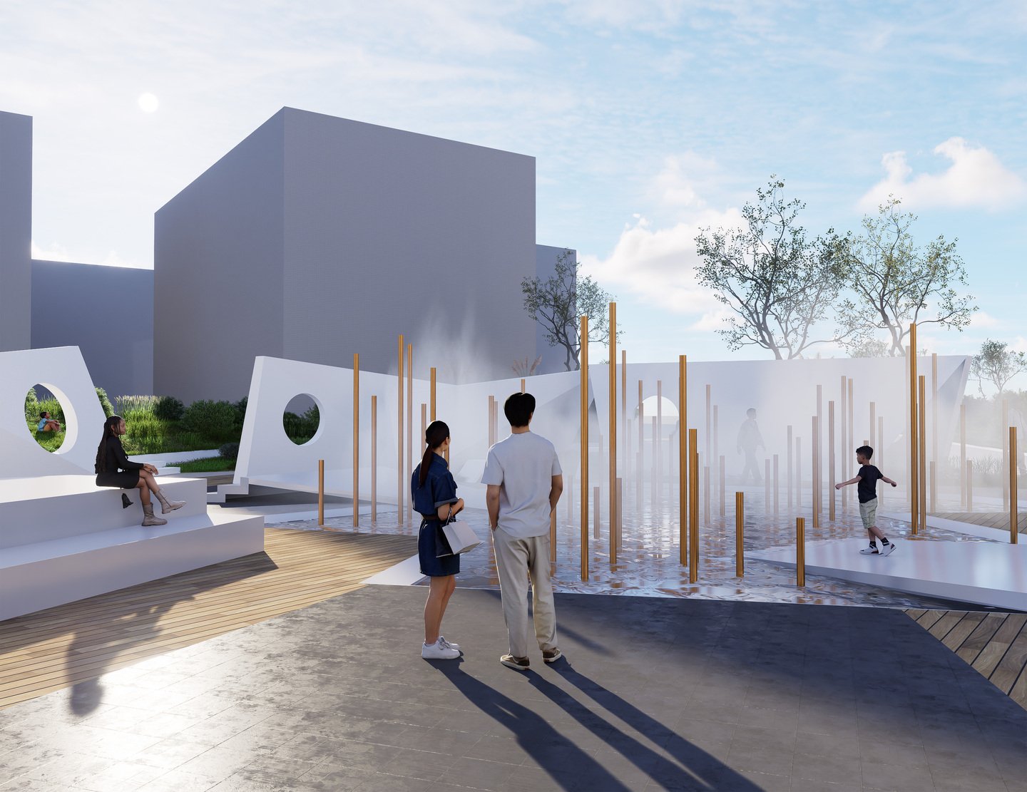 Паровая инсталляция в центре каждой зоны — символ отражения собственного «Я». Вода — зеркало сознания, облака пара — символ мыслей, идей, ответов.