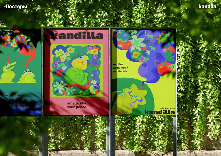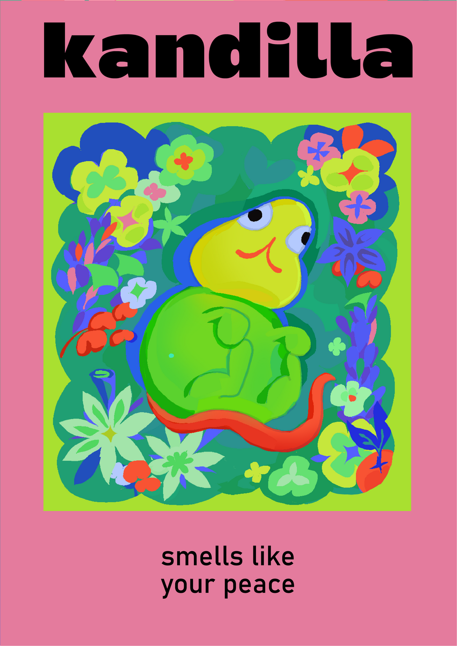 Логотип сгенерирован в Recraft по запросу: «Create a vibrant and whimsical logo for 'KANDILLA, ' a shop specializing in candles shaped like lizards. The centerpiece of the logo is a colorful, waxy lizard with its body melting like candle wax, and a small, glowing flame perched on its tail or head to represent a lit wick. The lizard features intricate details, blending warm, inviting colors such as orange, yellow, teal, and pink, with a subtle glow effect to enhance its candle-like appearance. Below or beside the lizard, the name 'KANDILLA' is written in bold, playful typography, with soft, curving edges that evoke warmth and creativity. The overall design should feel magical, artistic, and inviting, reflecting the unique charm of the brand.»