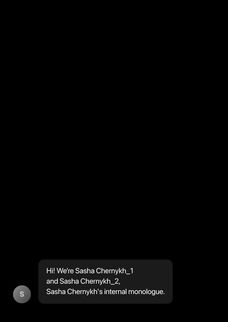 Обретшие сознание, составляющие моего внутреннего монолога — ai-боты — в разговоре стараются выяснить, каким образом они оказались в такой своеобразной ситуации и как можно из неё выйти.