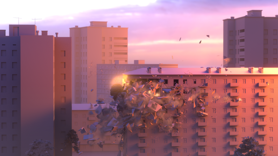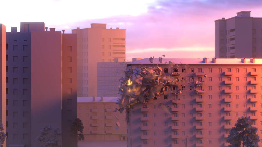 Задачей данного модуля была работа над комплексной симуляцией разрушения здания, включающей в себя RBD и volume.