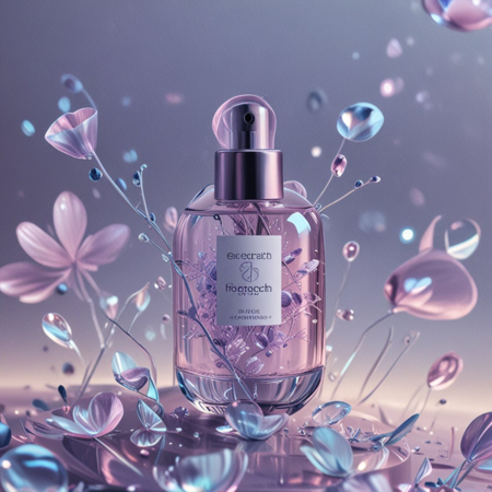 Prompt: Futuristic brand Floratech launch visual, combining technology and nature, glowing holographic integrated with abstract flowers and neon light accents, floating translucent elements, metallic reflections, soft iridescent gradients in icy blue, neon violet, and soft pink, clean minimalistic background, cinematic lighting, ultra-realistic 3D render, showcasing brand identity elements like product silhouette, typography hints, and color palette, dynamic composition, atmospheric depth, elegant and striking visual
