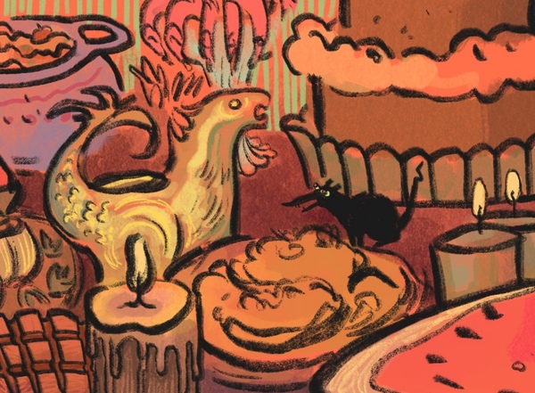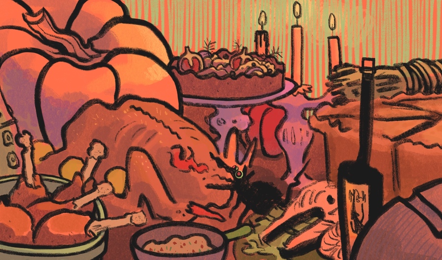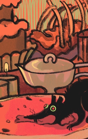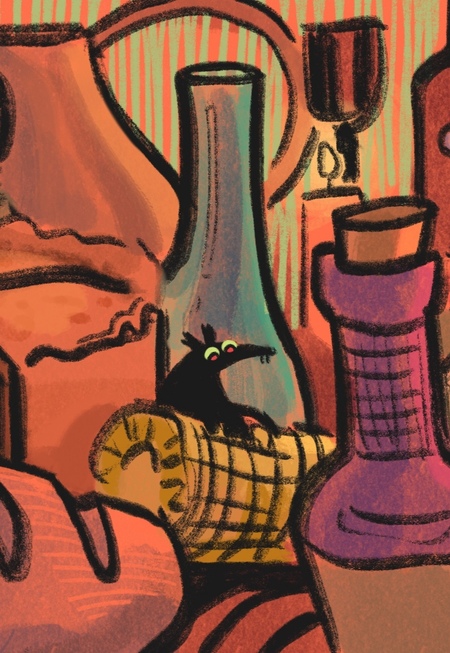 Это история про крысу, которой повезло оказаться на большом застолье. Кто-то накрыл стол, но забыл поесть. Зверёк пробирается через груды еды, по пути пробуя, что придётся ему по зубам. Лишь бы не объесться — трудно в такой ситуации держать себя в лапах.