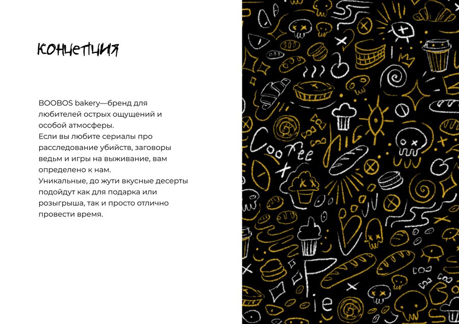 BOOBOS bakery—бренд для любителей острых ощущений и особой атмосферы. Если вы любите сериалы про расследование убийств, заговоры ведьм и игры на выживание, вам определено к нам. Уникальные, до жути вкусные десерты подойдут как для подарка или розыгрыша, так и просто отлично провести время.