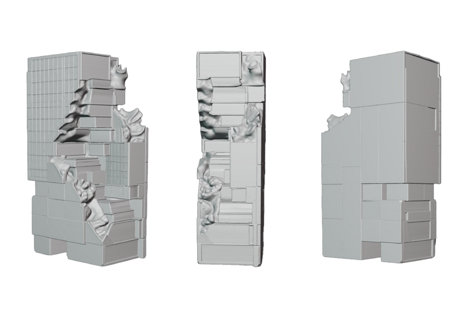 В проекте BOOK-Shells я исследую симбиоз человека и машины через серию 3D-печатных объектов — глитч-версий книжных шкафов, полностью созданных с помощью ИИ-инструментов от идеи до подготовки к печати. Эти шкафы — гибриды, где искусственный интеллект запускает процесс эволюции традиционной формы, превращая модель утилитарного предмета в скульптурный комментарий к постчеловеческому миру. Фрагментированные структуры намекают на адаптивность и синтез медиума и сообщения: шкафы словно «растут» или «мутируют» в ответ на цифровые данные, «вплявляя» в себя книги, отходя от жёсткой геометрии к органичному хаосу