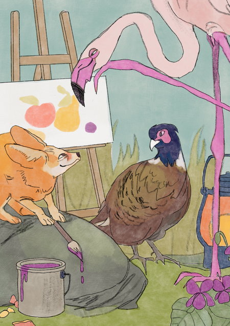Фазаны умеют прятаться. Их пёстрое оперение сливается с осенней листвой. Фламинго рождаются серыми. Розовый цвет их перьям придают особые вещества в еде. Феньки — маленькие лисички. Их огромные уши помогают отлично слышать и охлаждать тело в жаркой пустыне.