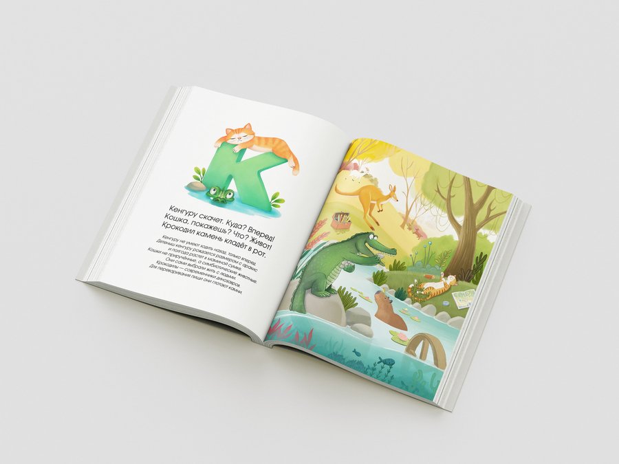 Кенгуру скачет. Куда? Вперед! Кошка, покажешь? Что? Живот! Крокодил камень кладёт в рот.