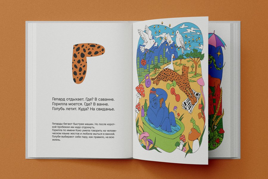 Гепард отдыхает. Где? В саванне. Горилла моется. Где? В ванне. Голубь летит. Куда? На свиданье.