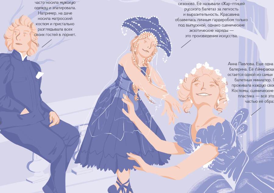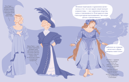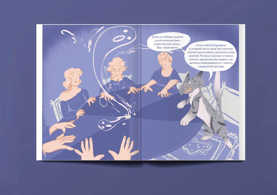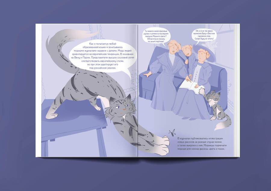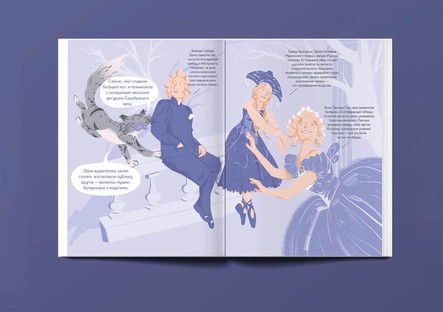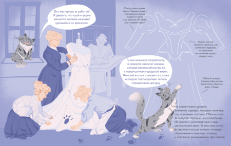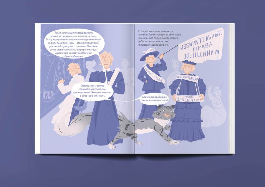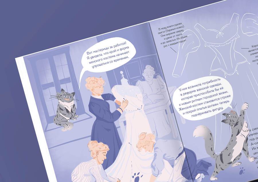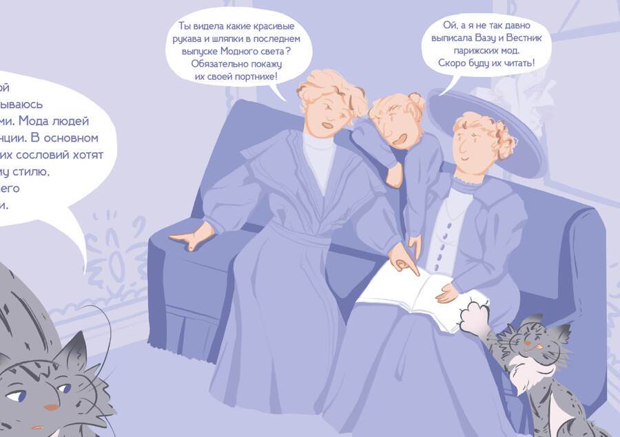 Путешествуя по Серебряному веку вместе с главной героиней Кошкой, ты узнаешь о том, как одевались дамы разного рода деятельности, о модных силуэтах. Тебя ждут интересные факты об этом времени и знакомство со знаковыми женскими фигурами. Одежда — это не просто вещи, которые входят или выходят из моды, а отражение истории и даже способ самовыражения!