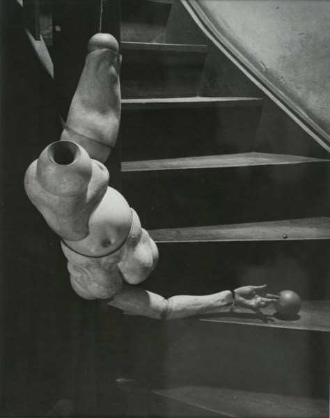 В сюрреалистических и тревожных работах Беллмера руки куклы, неестественно сочлененные и искаженные, символизируют гротескное отчуждение от тела и фрустрацию от манипуляции. Это образ, где рука лишена своей естественной функции контакта и подчинена внешней воле, становясь лишь фрагментом или объектом, или пропадает у куклы вовсе. Искаженное сочленение, которое невозможно в реальной жизни, передает чувство тревоги и тильта от потери контроля над собственной телесностью и судьбой. Рука здесь это сломанный инструмент, который не может дотянуться, обнять или создать, а лишь фиксирует состояние распада, так как ее либо нет, либо она совсем не на своем месте.