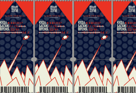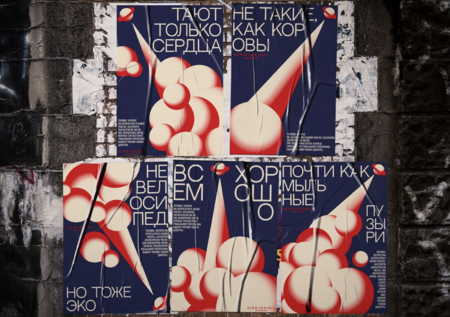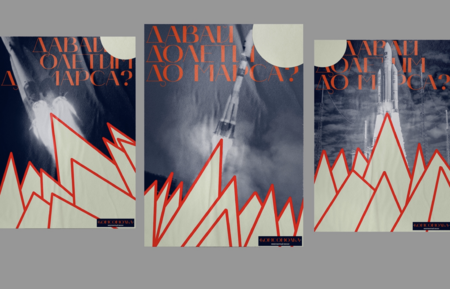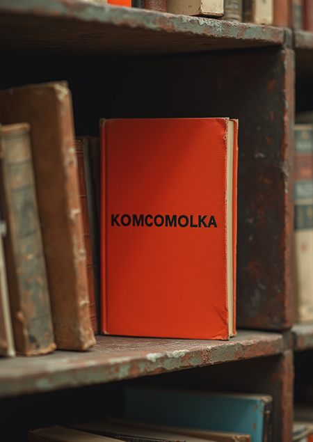 5. -soviet brutalism poster inscription «KOMCOMOLKA», red rocket in blue space