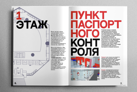 2. -small space store with an old Russian woman in a headscarf selling blue and red T-shirts with logo «KOMCOMOLKA», glass walls all in spaceship (realism)