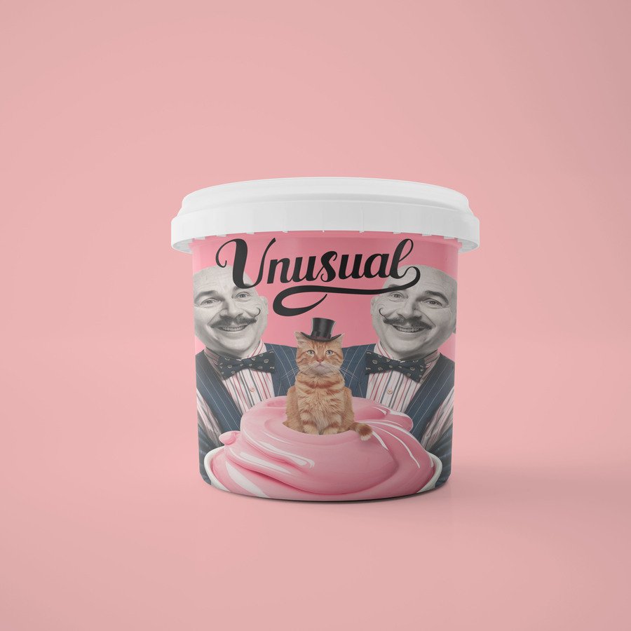 Проект «НЕобычный йогурт» или UNusual yogurt» создан, как идея стартап новой молочной продукции, в рамках торгового товара во всем мире. Его маскотами-представителями являются рыжий кот и усатый мужчина средних лет — Леонид. А «необычное» название отсылает к магичиским свойствам этого йогурта. Цель проекта: редизайн продукта с помощью искусственного интелекта.