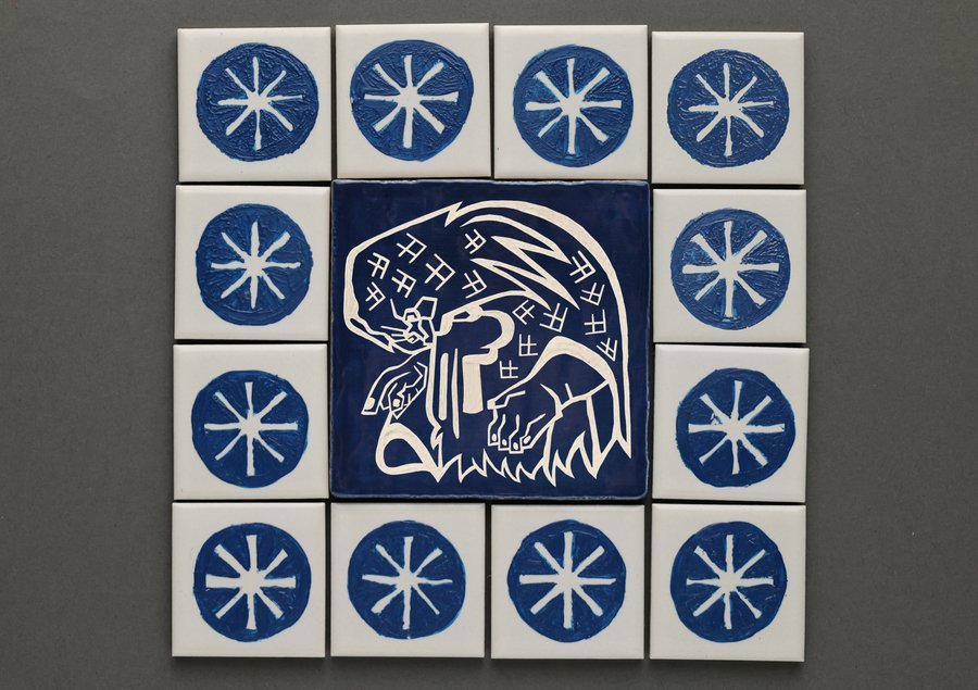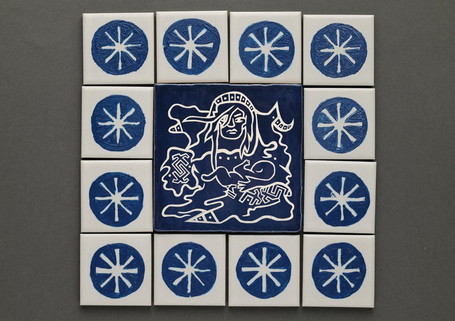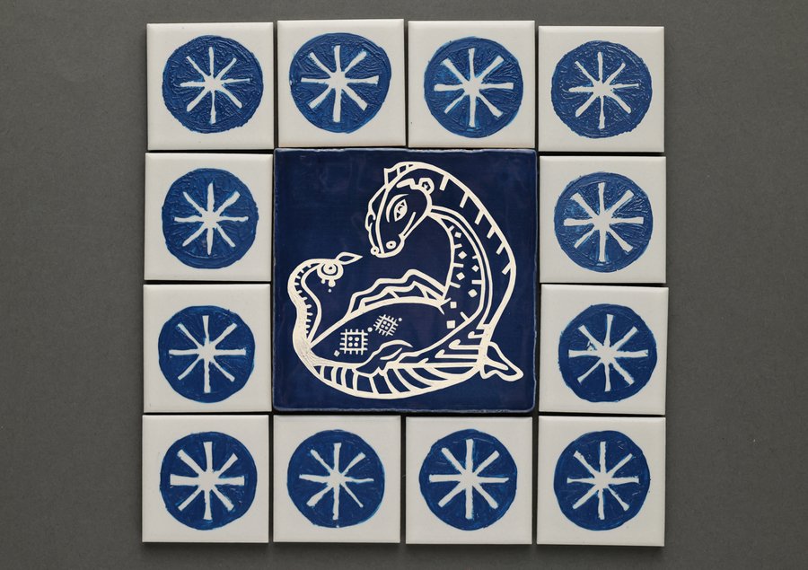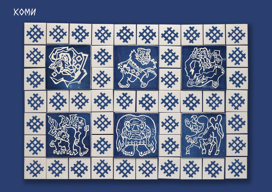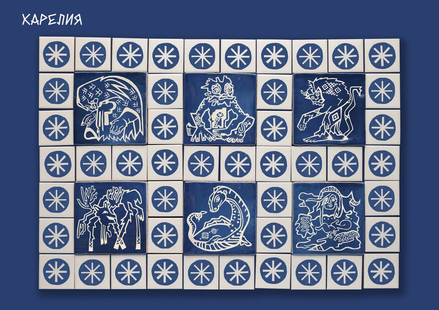 Концепция проекта заключается в объединении персонажей из культур малой родины каждой из нас в единый паттерн, «под одну крышу» Санкт-Петербурга, где мы впервые встретились. На смену стенам пещер, где жили люди, пришла декоративная плитка: выбор материалов обусловлен желанием сохранить связь времен.